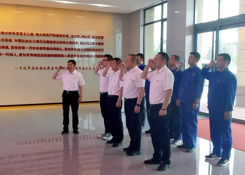 面向党旗和毛主席伟人塑像,全体电厂党员庄严宣誓,重温了入党誓词,回首初心使命。在讲解员的引导下,党员干部参观了红色记忆展厅,一场以“党的奋斗历史进程”为主线的党史教育党课引人入胜,通过听讲互动、瞻仰革命遗物、观看珍贵影像资料,共同重温了党史、新中国史,感受新中国领袖风范、元帅风采和伟大建设成就。